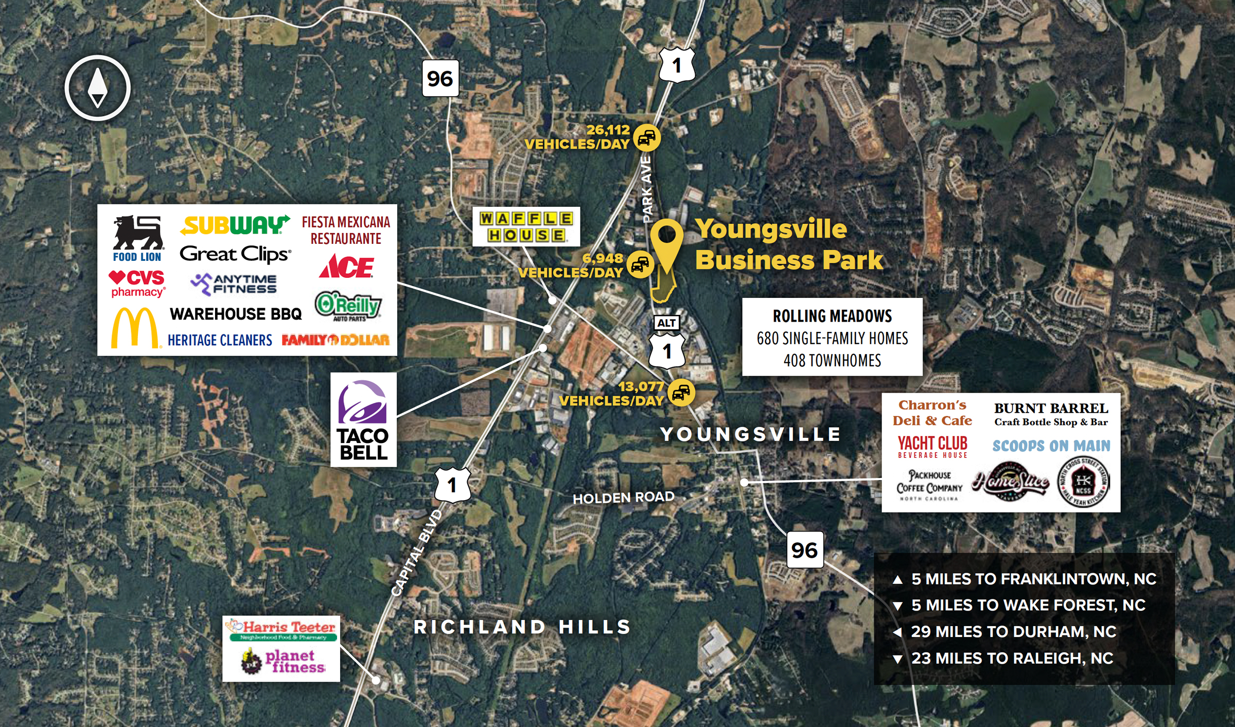 New 25-acre business community located along Park Avenue (US Alt 1) near NC 96, strategically located in the high-growth Raleigh–Durham metro area, with easy access to Capital Boulevard (US 1). Expanding residential growth and high-income commuter traffic along US-1/Alt-1 create strong demand and an ideal environment for new and expanding businesses. The Franklin county business community is just 23 miles north of downtown Raleigh with quick convenient connections to surrounding communities and amenities.